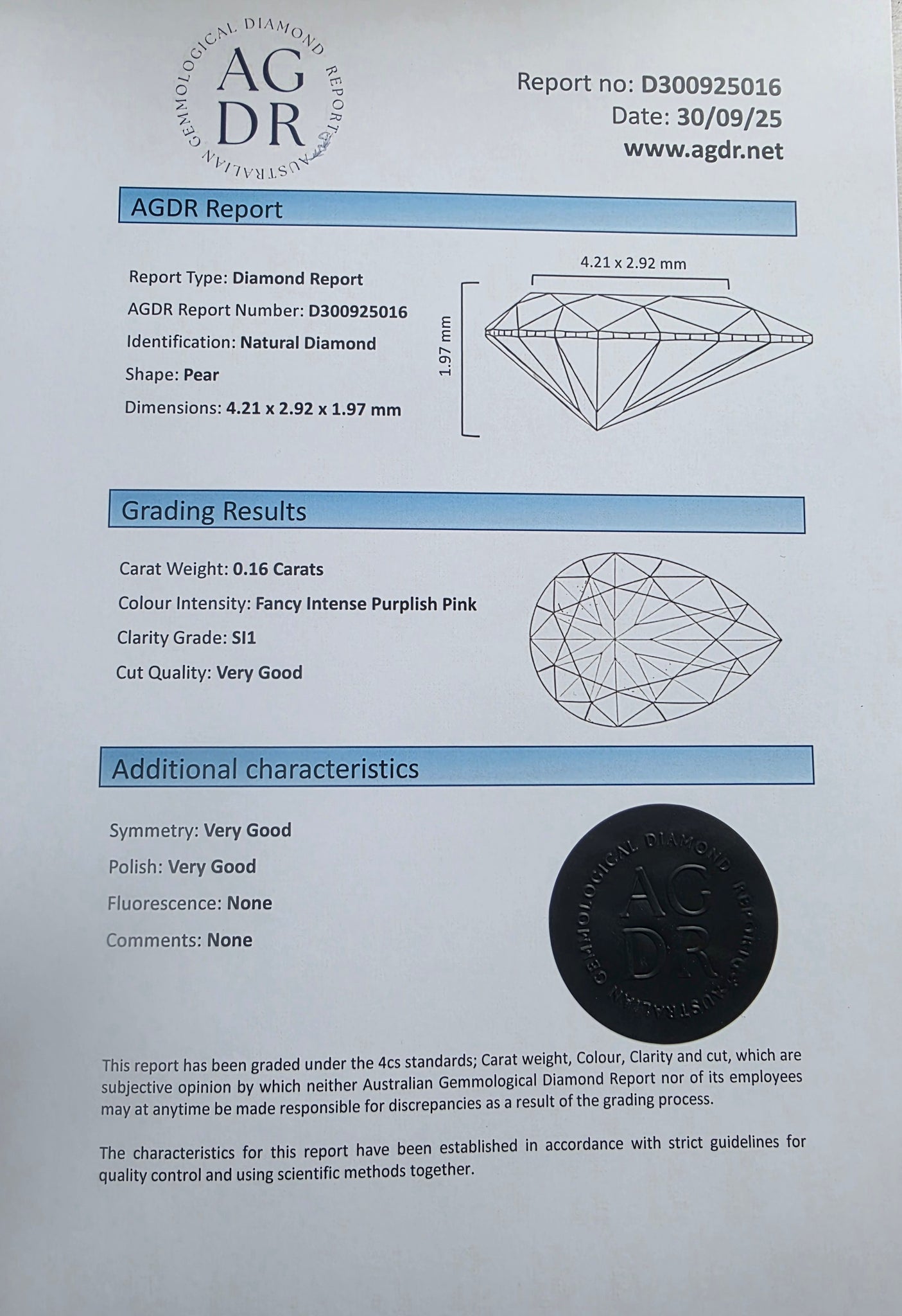 Certified with AGDR (Australian Gemmological Diamond Report)